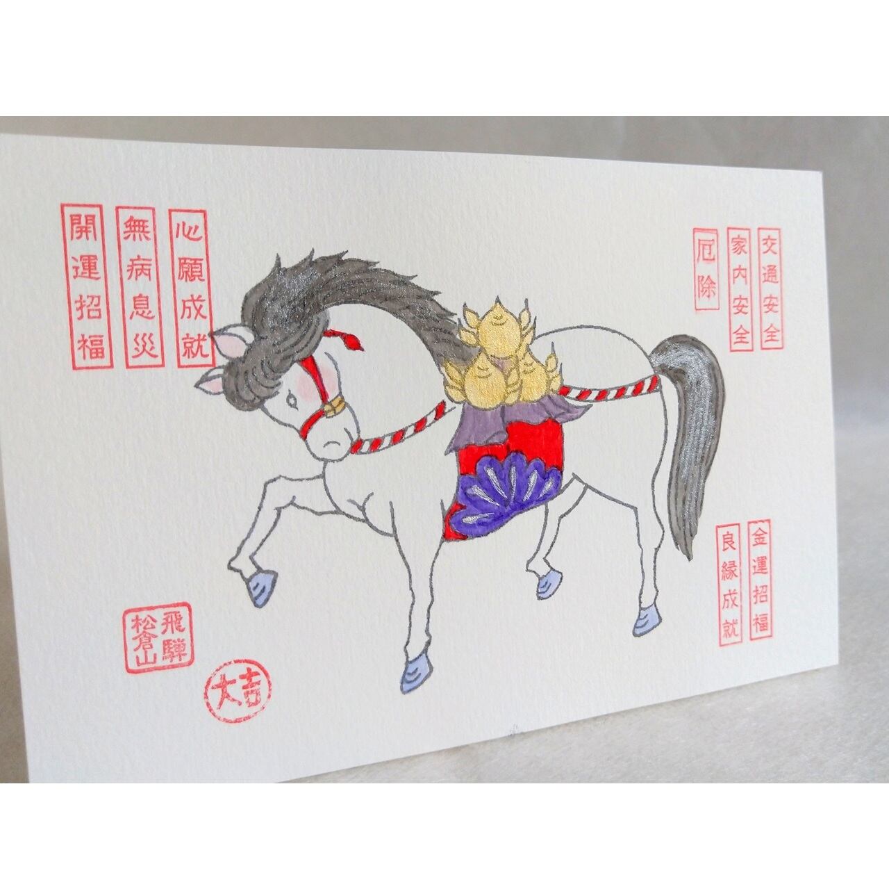松倉観音にて御祈祷していただいた「版」と「祈願印」を使用し、一頭一頭心をこめて手刷り・手塗りした紙絵馬です。