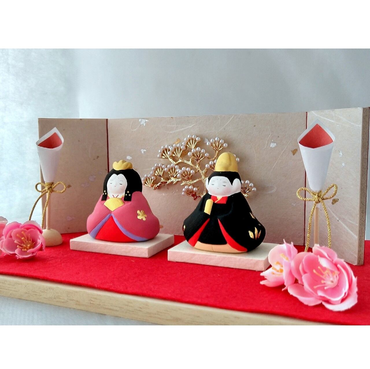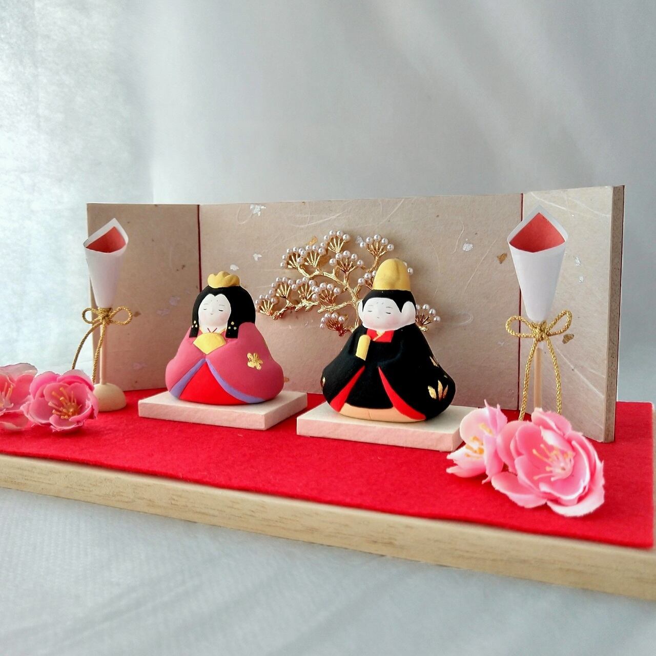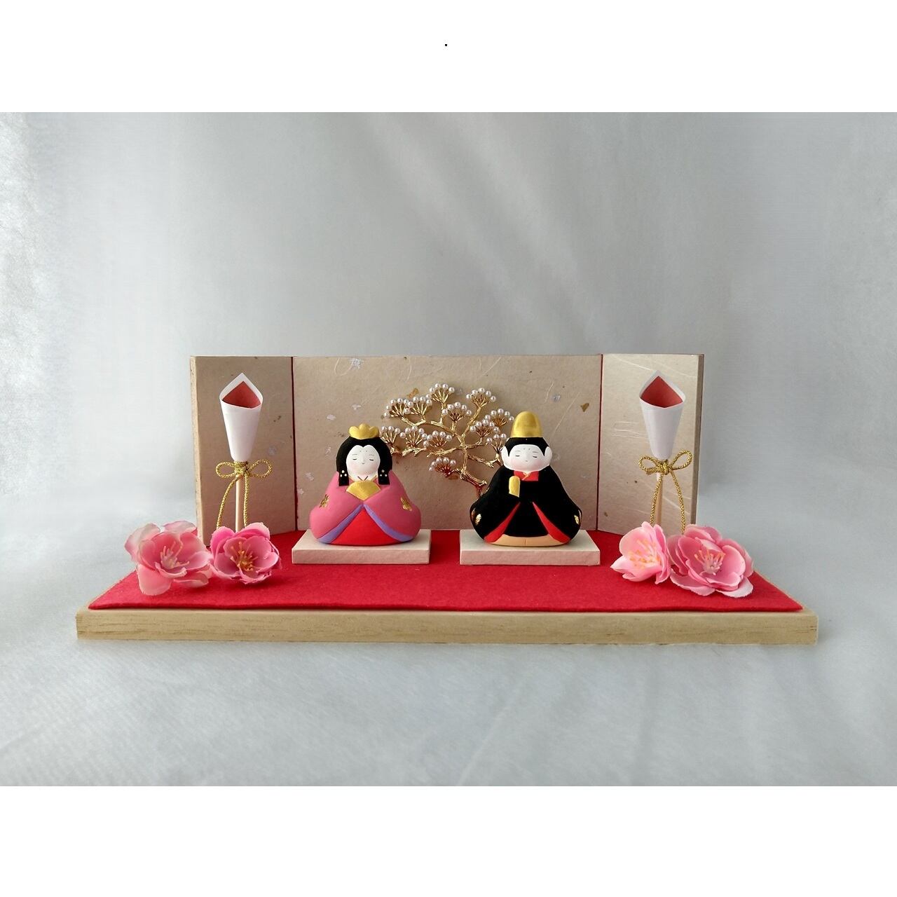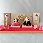 少しのスペースで華やか可愛く飾れる おひなさま 百花(ももか)の親王飾りです。