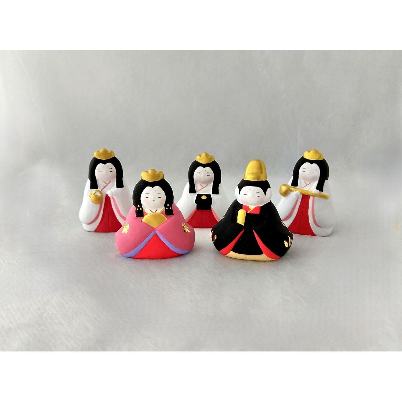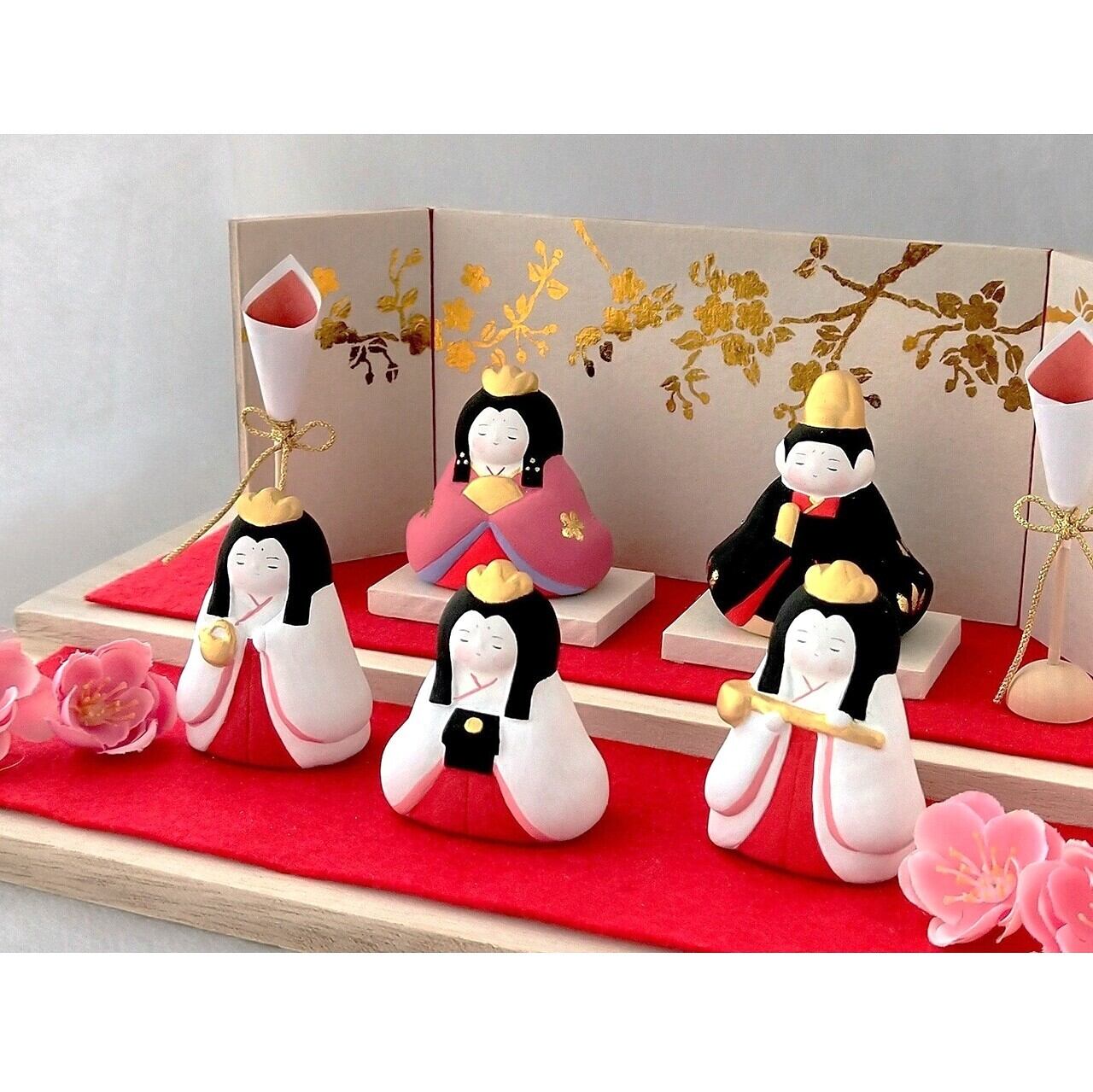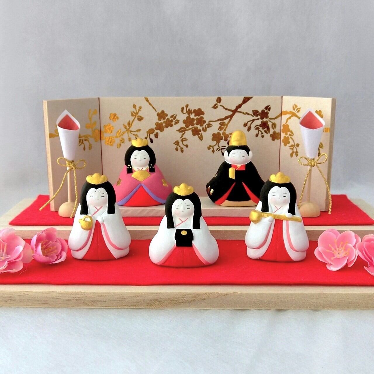 少しのスペースで華やか可愛く飾れる おひなさま 百花(ももか)の五人飾りです。