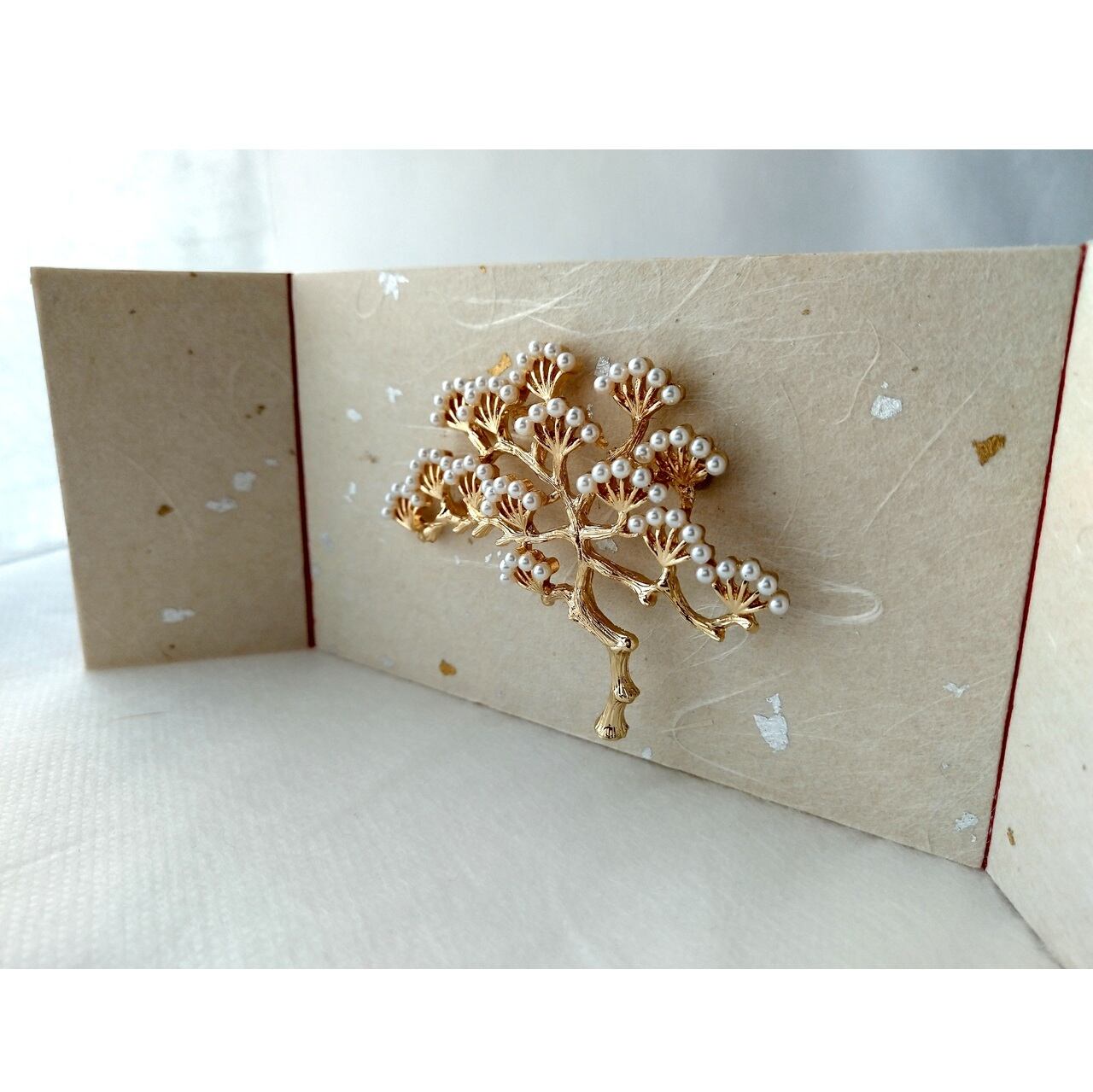松の木の屏風は、アクセサリー仕様の松の木のモチーフを接着した華やかな雰囲気の屏風です。
