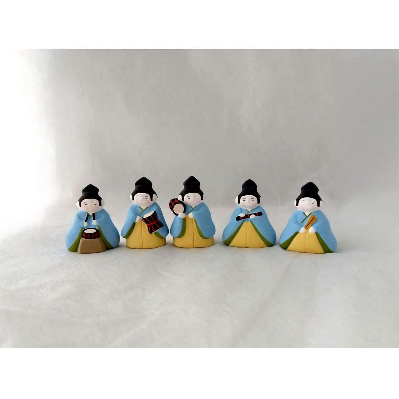 三人官女・五人囃子・随身・仕丁は、女雛男雛と比べ少し小さいです。