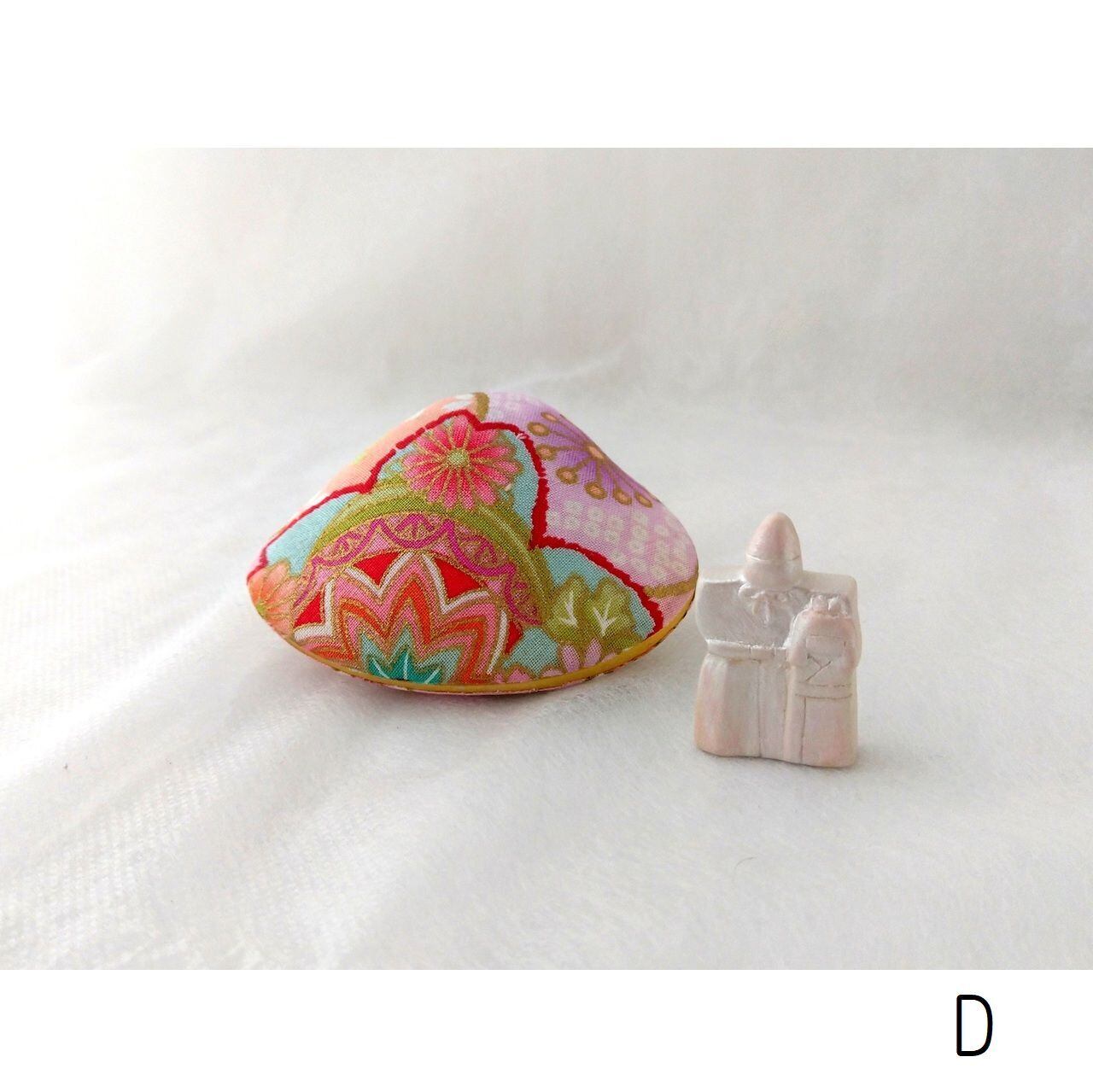小さな立雛は陶製。素焼きにパール系の色を彩色しました。