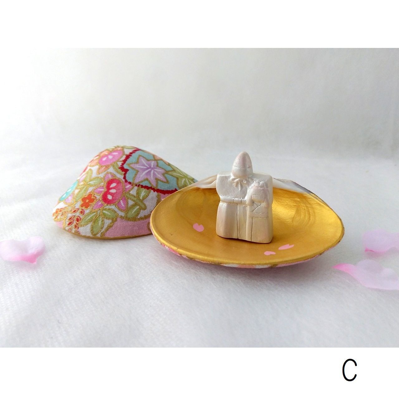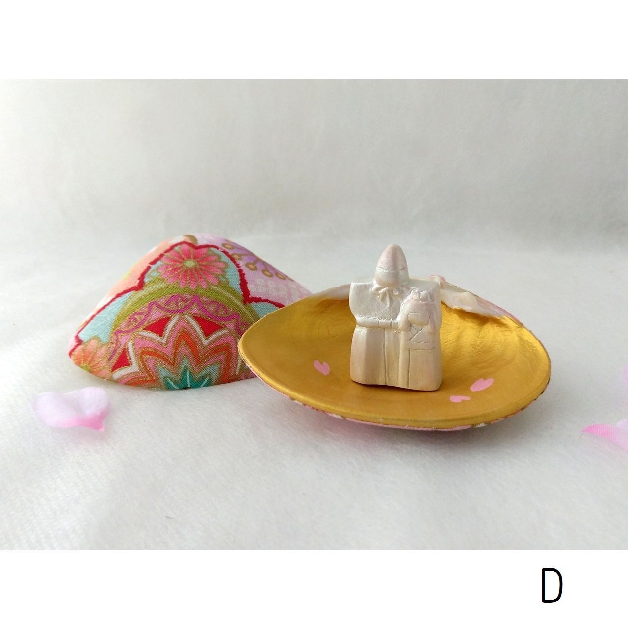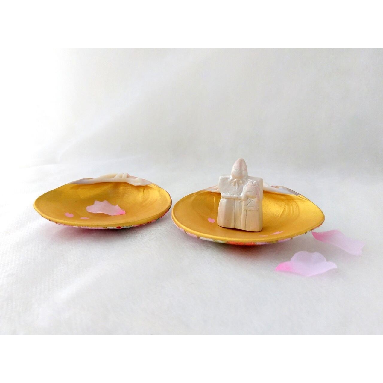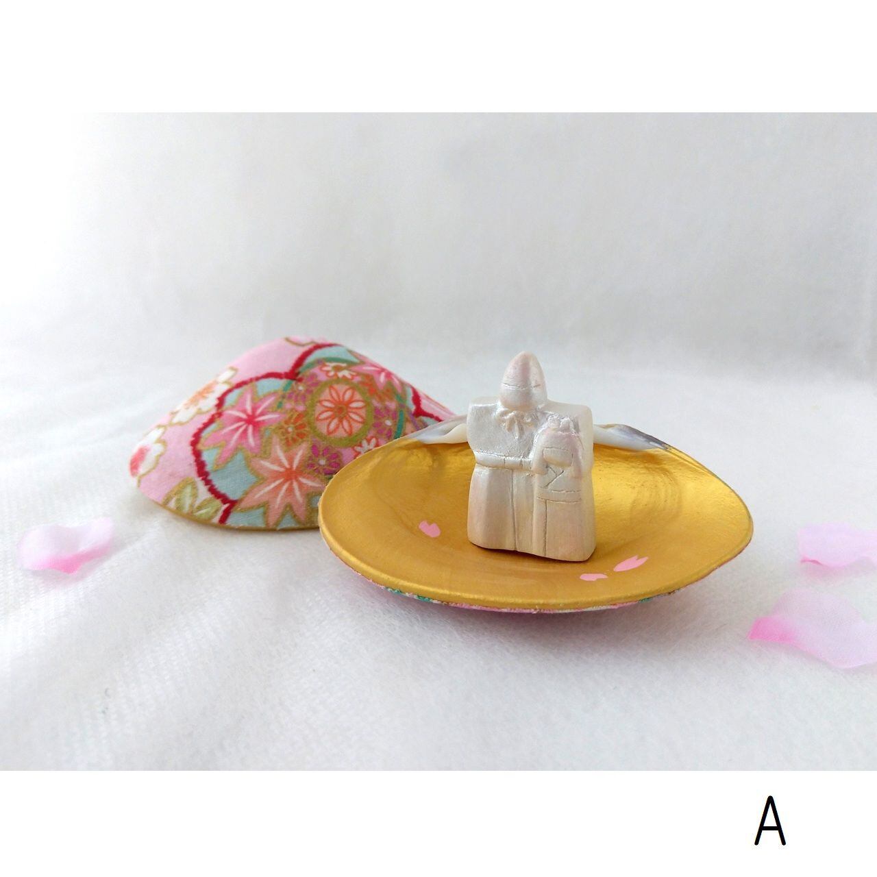 貝合わせをアレンジした、小さな立雛と蛤の飾り物です。