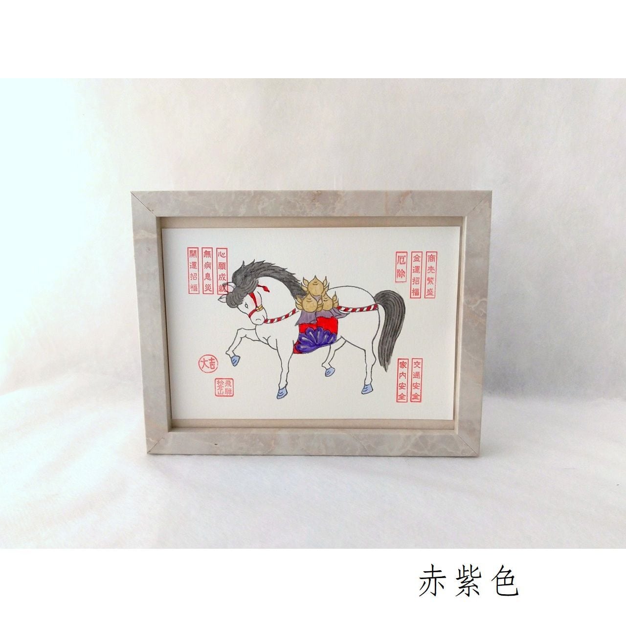 松倉観音にて御祈祷していただいた「版」と「祈願印」を使用し、一頭一頭心をこめて手刷り・手塗りした紙絵馬です。