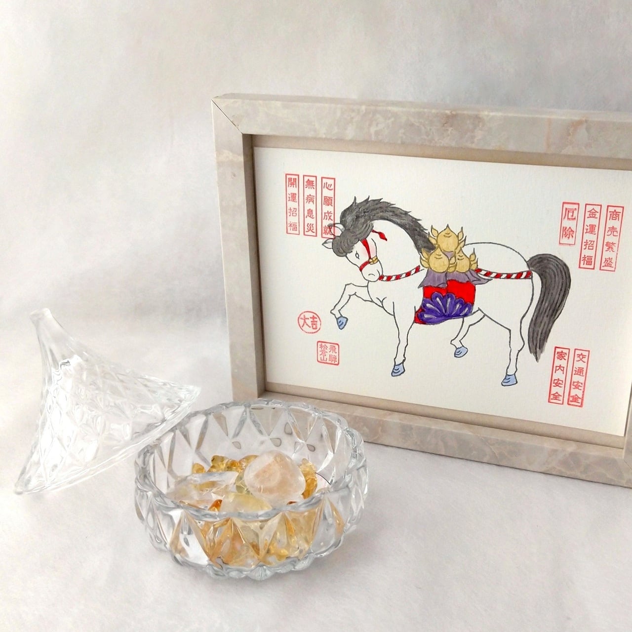 2026年の干支の午に、気分が上がる可愛いキャニスターに入った水晶たち。