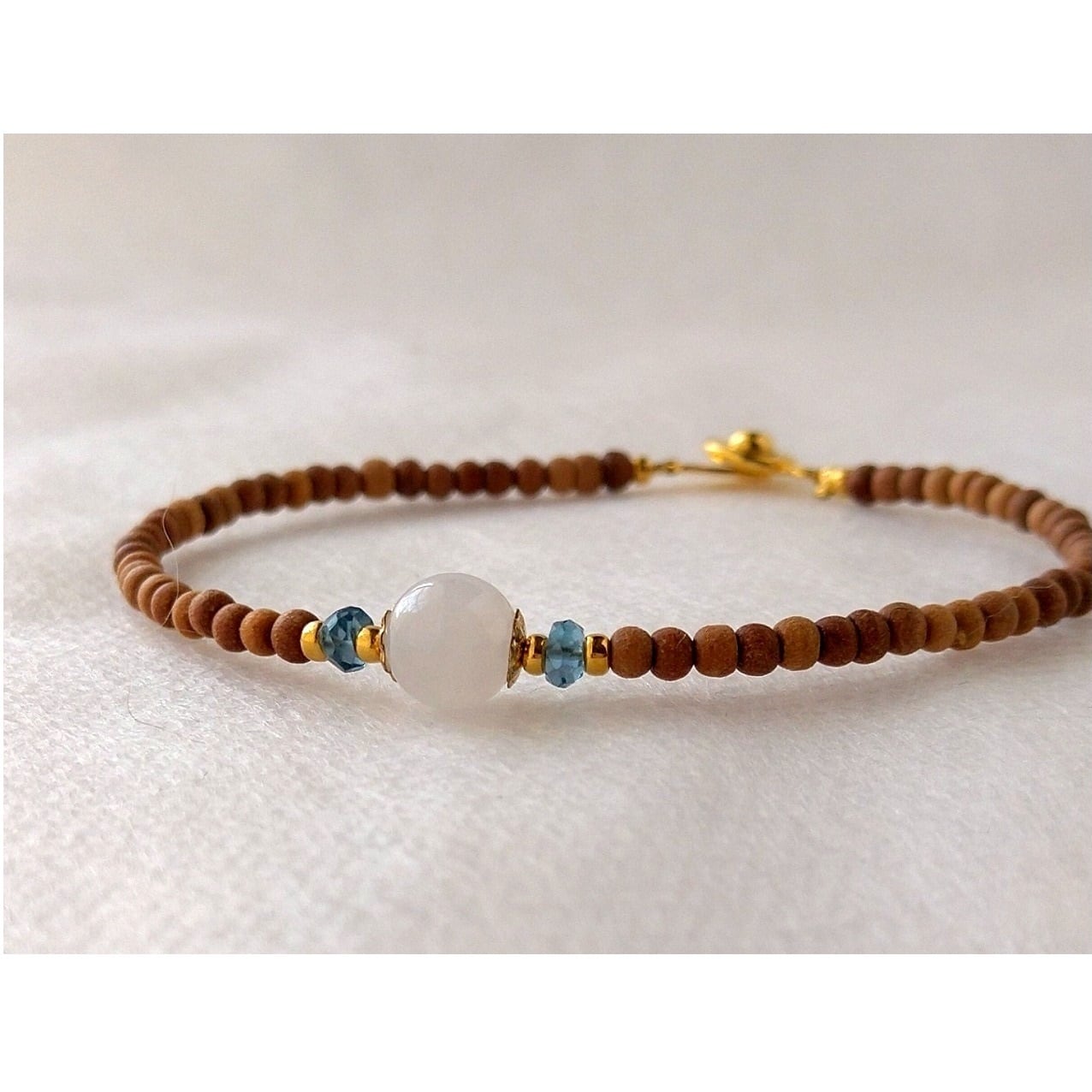 白檀ブレスレット 白翡翠&ロンドンブルートパーズ 【5月誕生石】