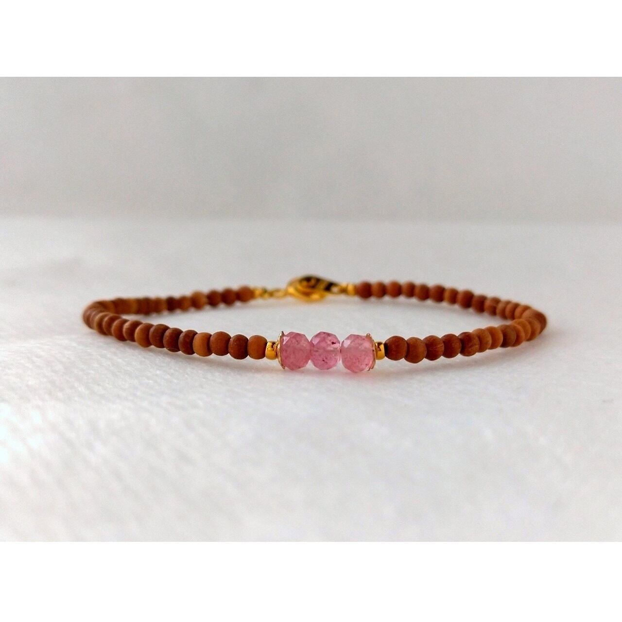 重くなりがちなウッドビーズブレスレットですが、高貴な白檀の小型丸玉(約2mm)を使い素敵に仕上げました。
