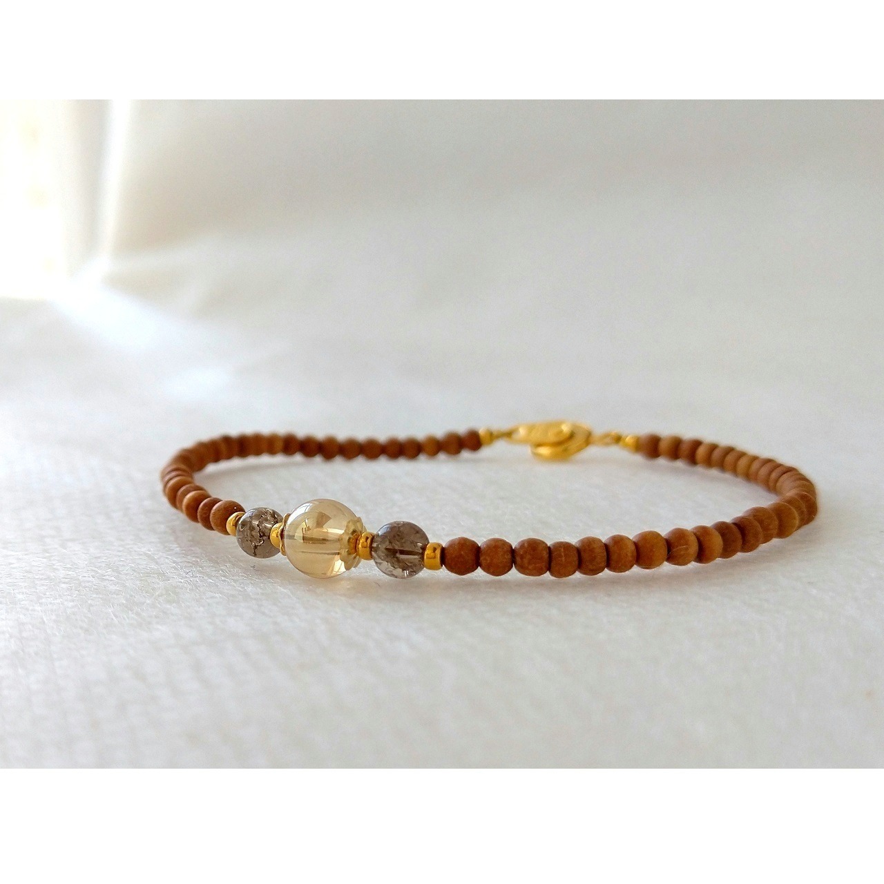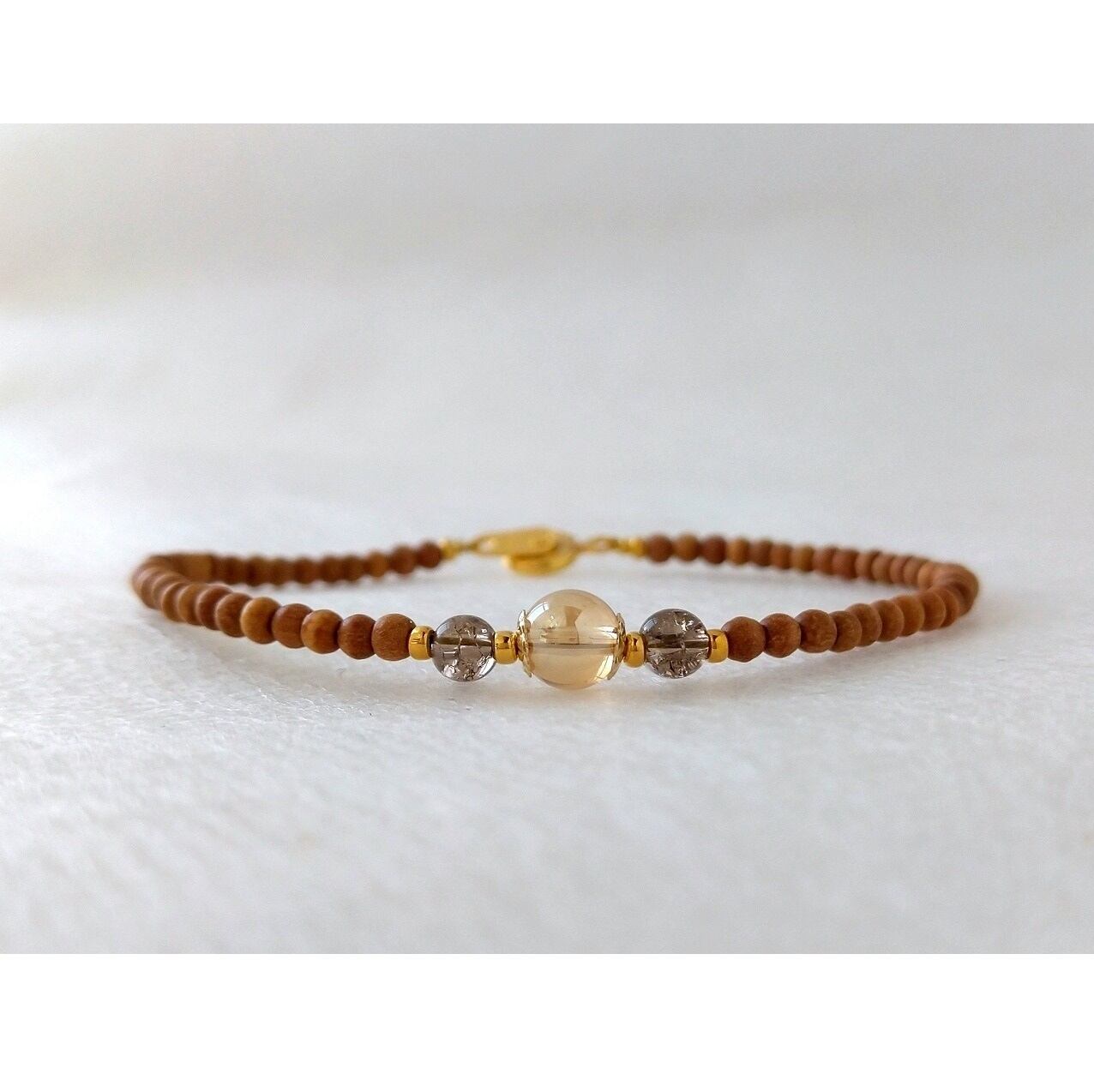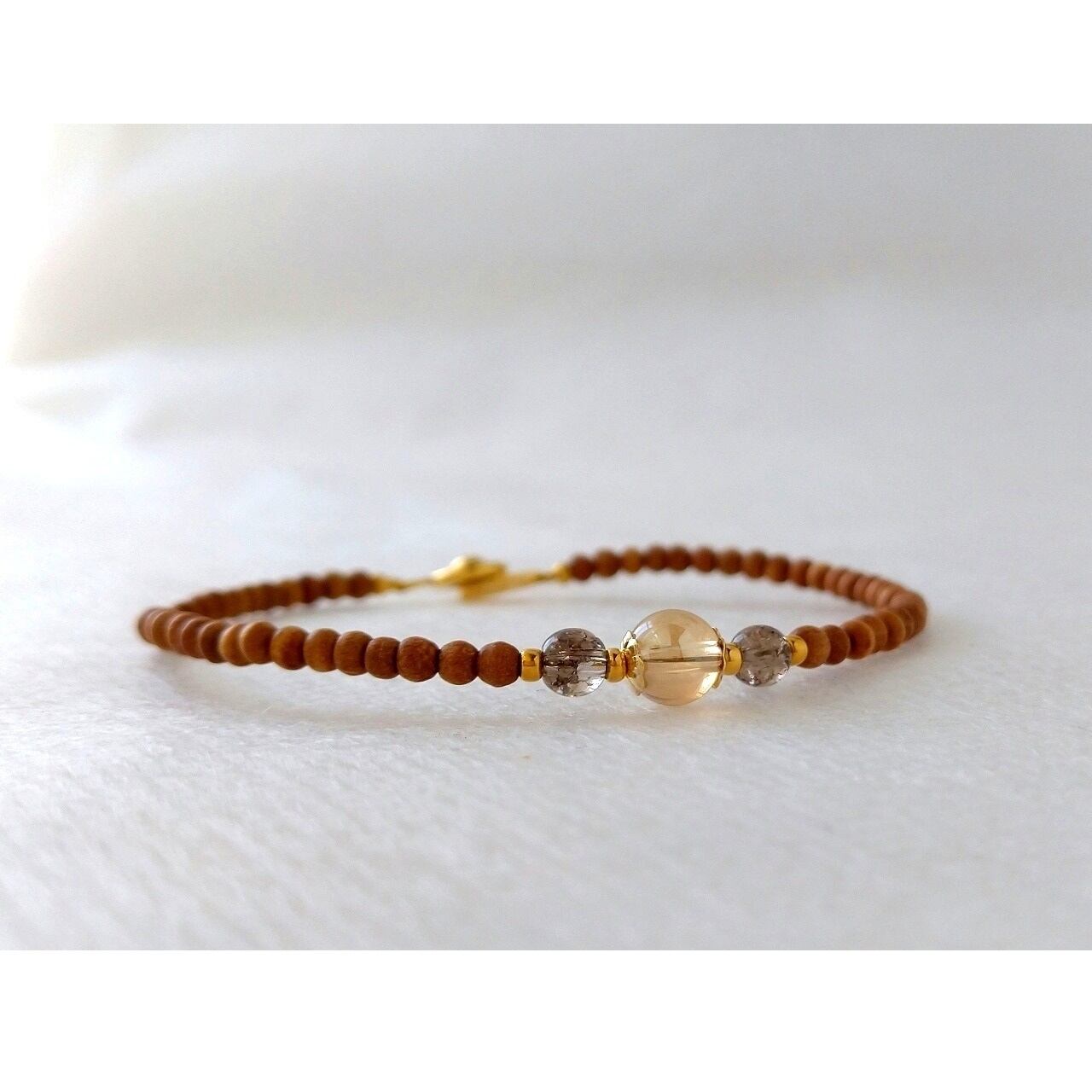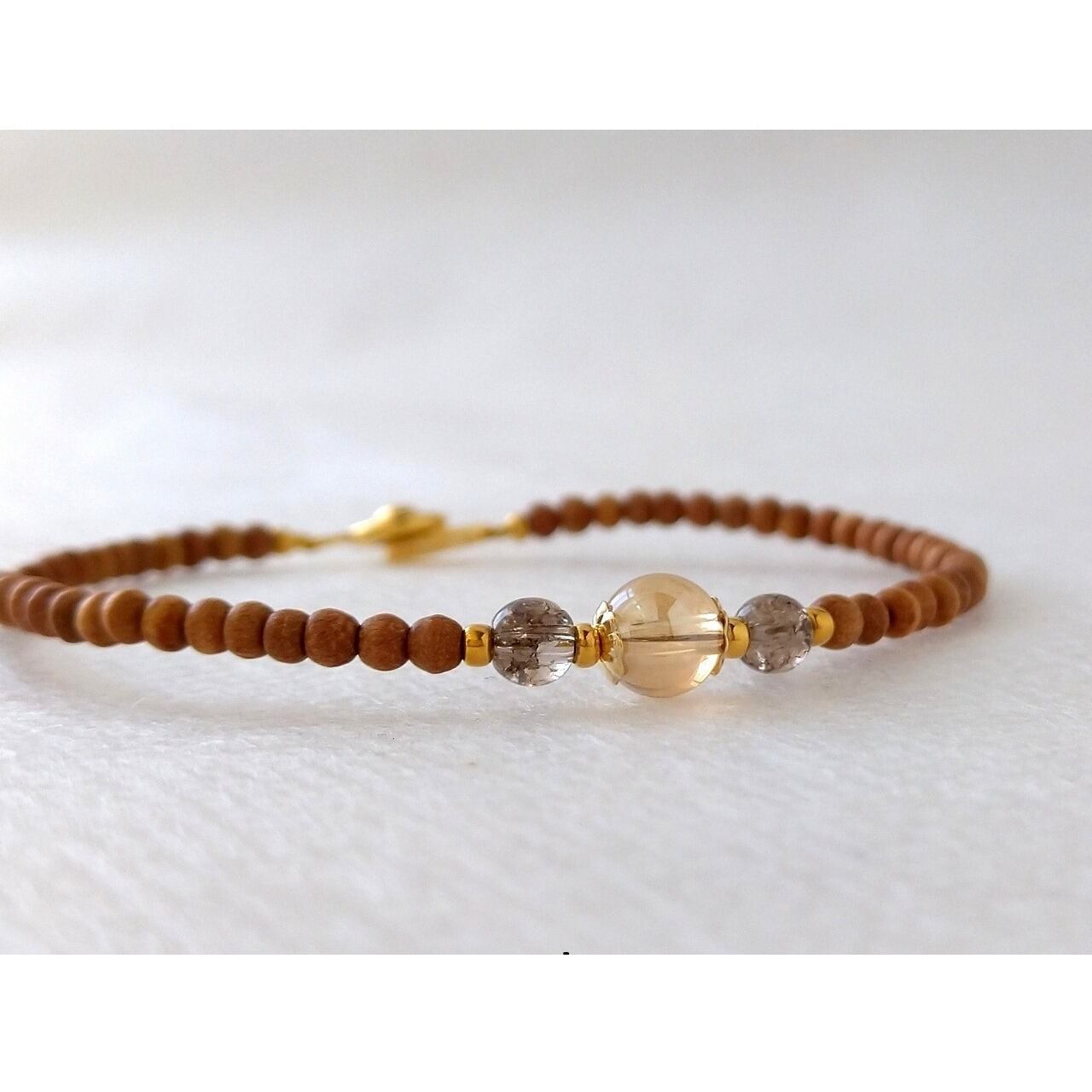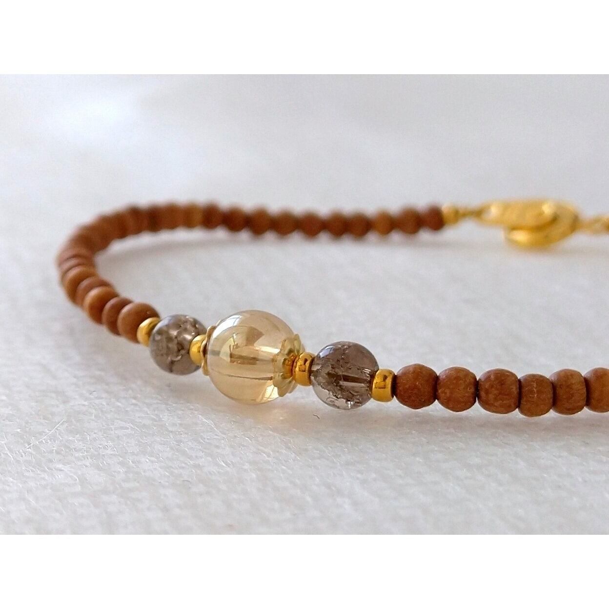 白檀とシャンパンゴールドオーラ水晶のお洒落なブレスレットです。